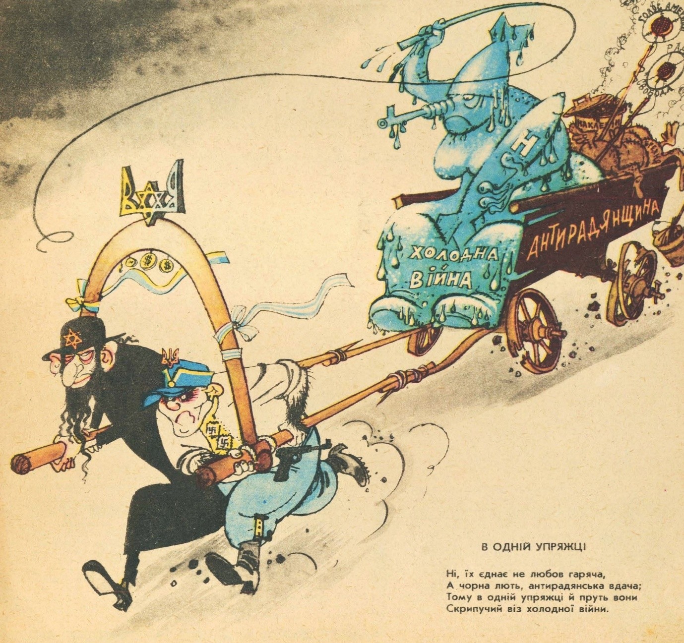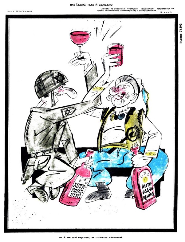 One of the most striking Soviet caricatures combining anti-Semitism and hatred of Ukrainian national feeling, during the 1970s, is this one: