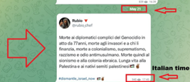 On Saturday, September 28th, 2024, during a “pro-Palestinian” event organized in Milan by the far-left group “Committee for the Support of Communist Resistance (CARC)” and the Arab-Palestinian Democratic Union, Rubini, incited to mark the houses of the “Zionist agents”.[ix]