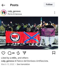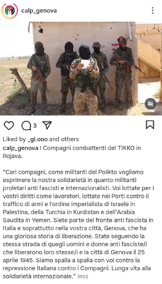 In August 2020, the CALP Instagram account posted a video of armed members of the TIKKO, the Turkish communist insurgent organization praising CALP for its “anti-fascist activity in Italy”.